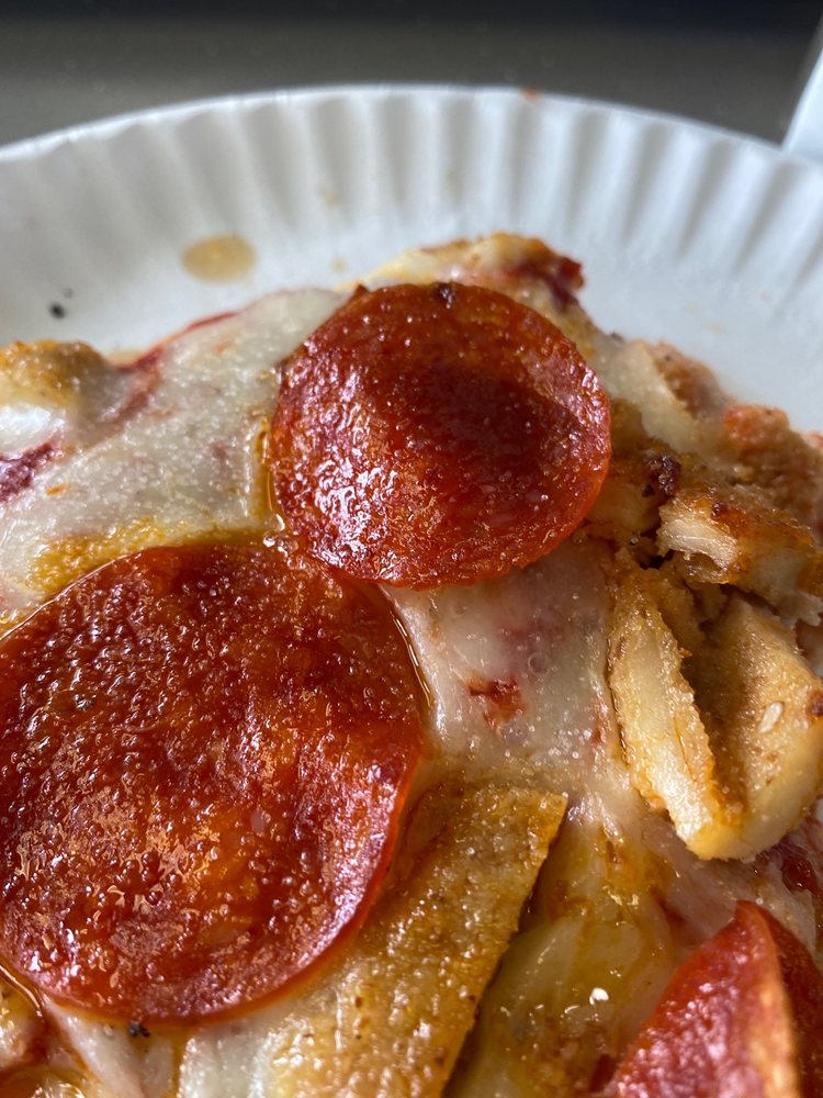 Tender chunks of chicken and sausage with a mix of diced roasted potatoes, sauteed broccoli and cherry peppers.